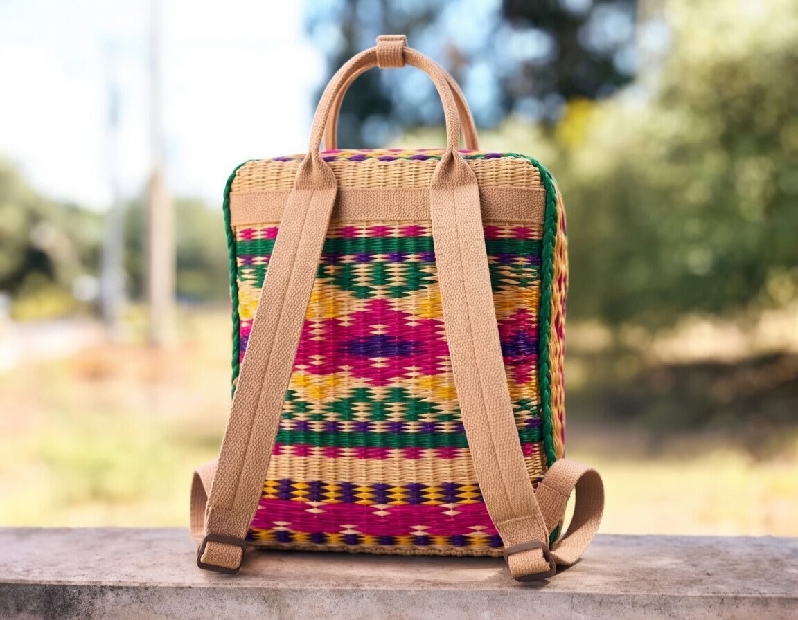 A Fjällräven fugiu ao tecido para criar uma mochila com outro material, nesta caso a palha. A inspiração foi a cestaria tradicional portuguesa, com o padrão colorido e geométrico clássico desta peça de artesanato.